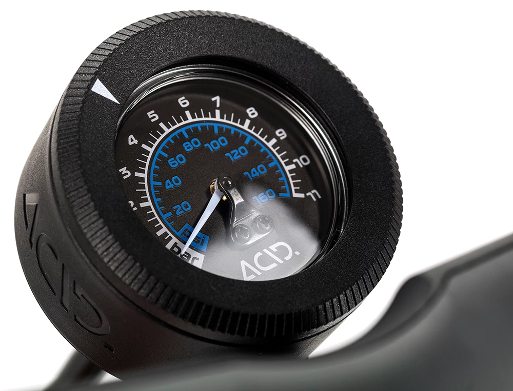 La pompe à pied RACE FLOOR d’ACID est compatible avec les valves Presta et Schrader grâce à sa tête EZ. Elle est particulièrement ergonomique lors du pompage grâce à ses poignées coudées et extrêmement précise grâce à sa grande échelle de pression parfaitement lisible.